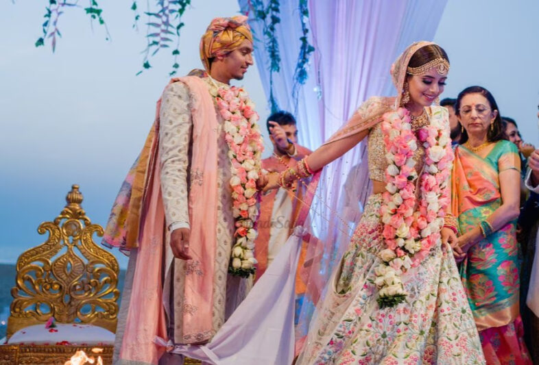 Traditional attire: The bride and groom usually wear traditional attire for the Hindu wedding ceremony, with the bride wearing a saree or lehenga and the groom wearing a sherwani or a dhoti-kurta.